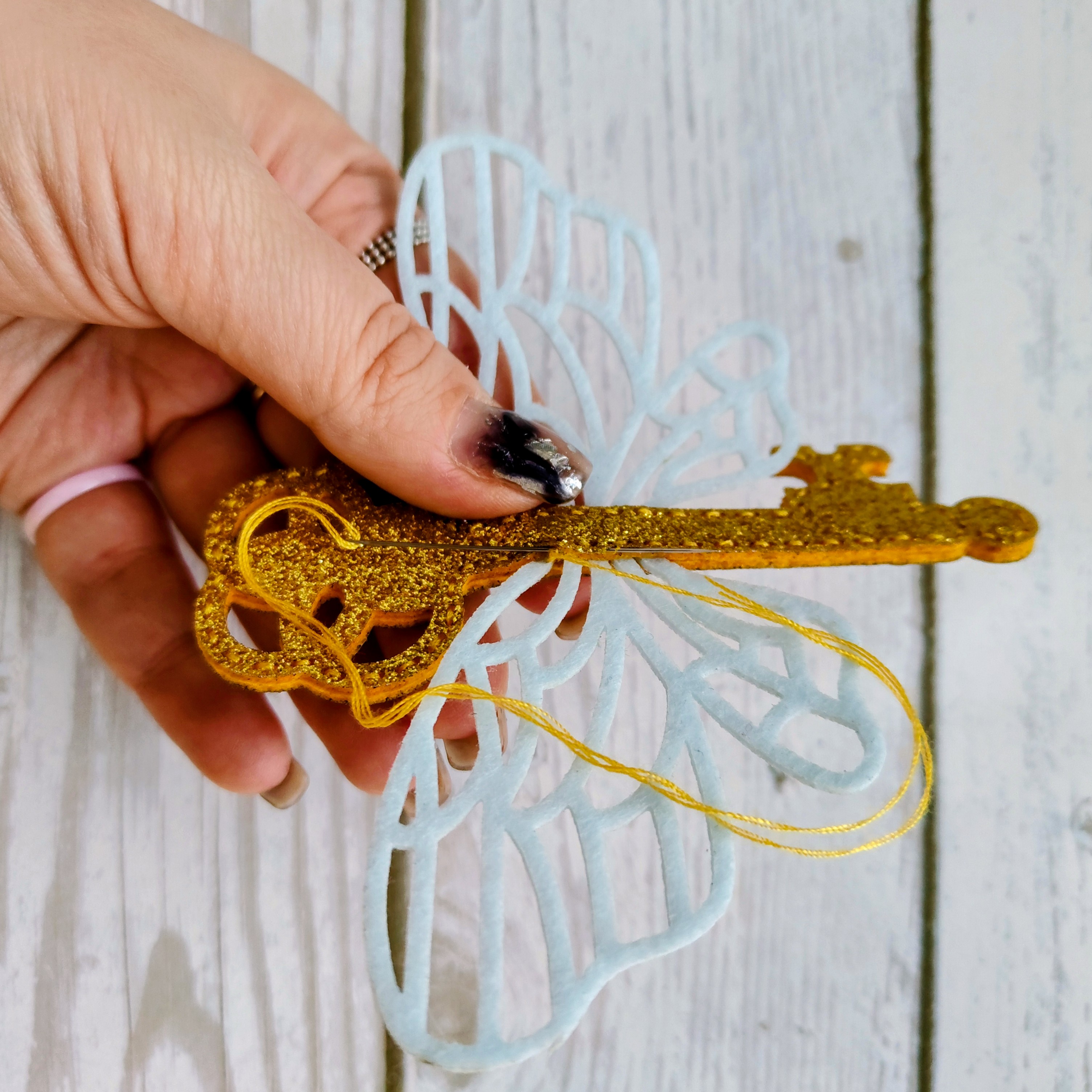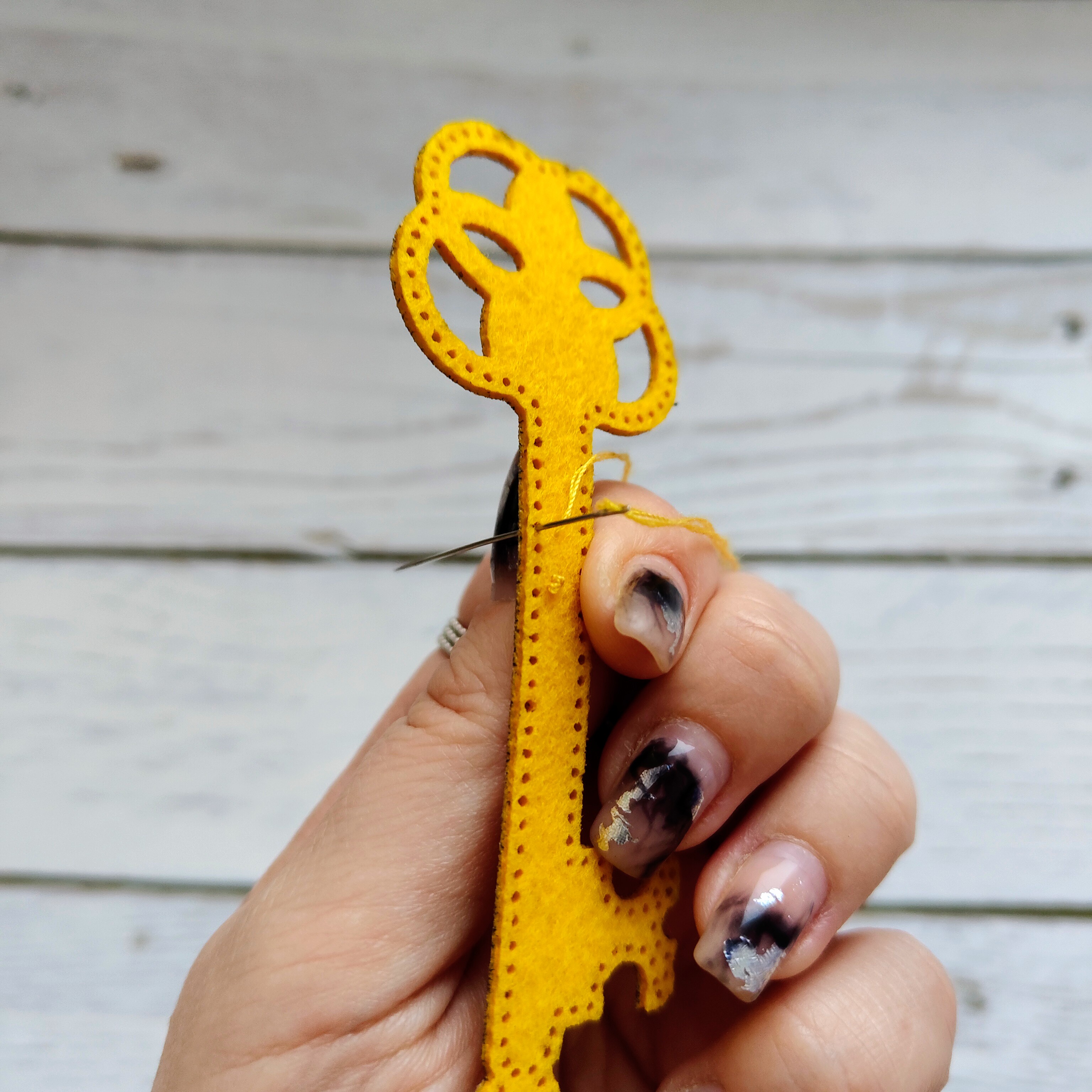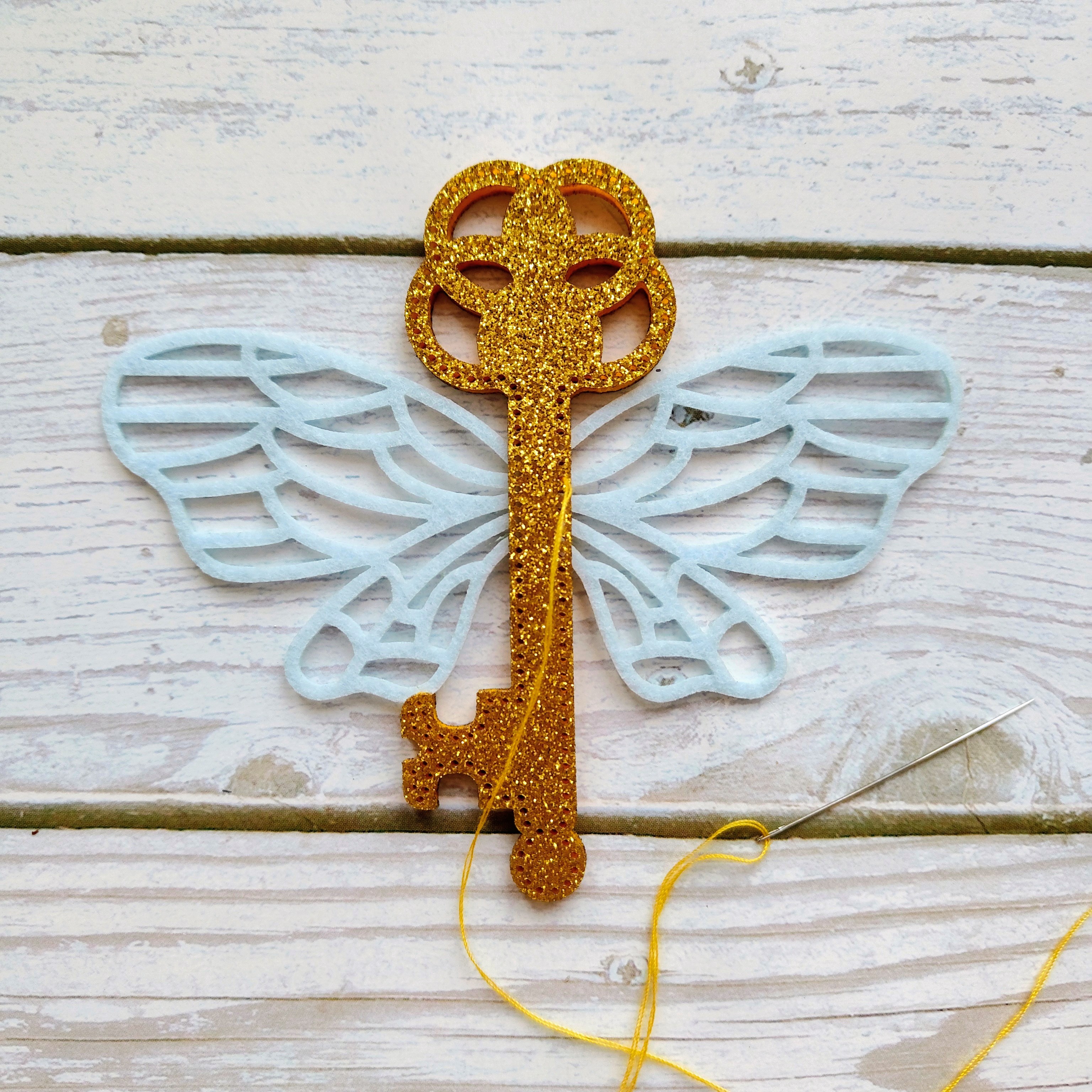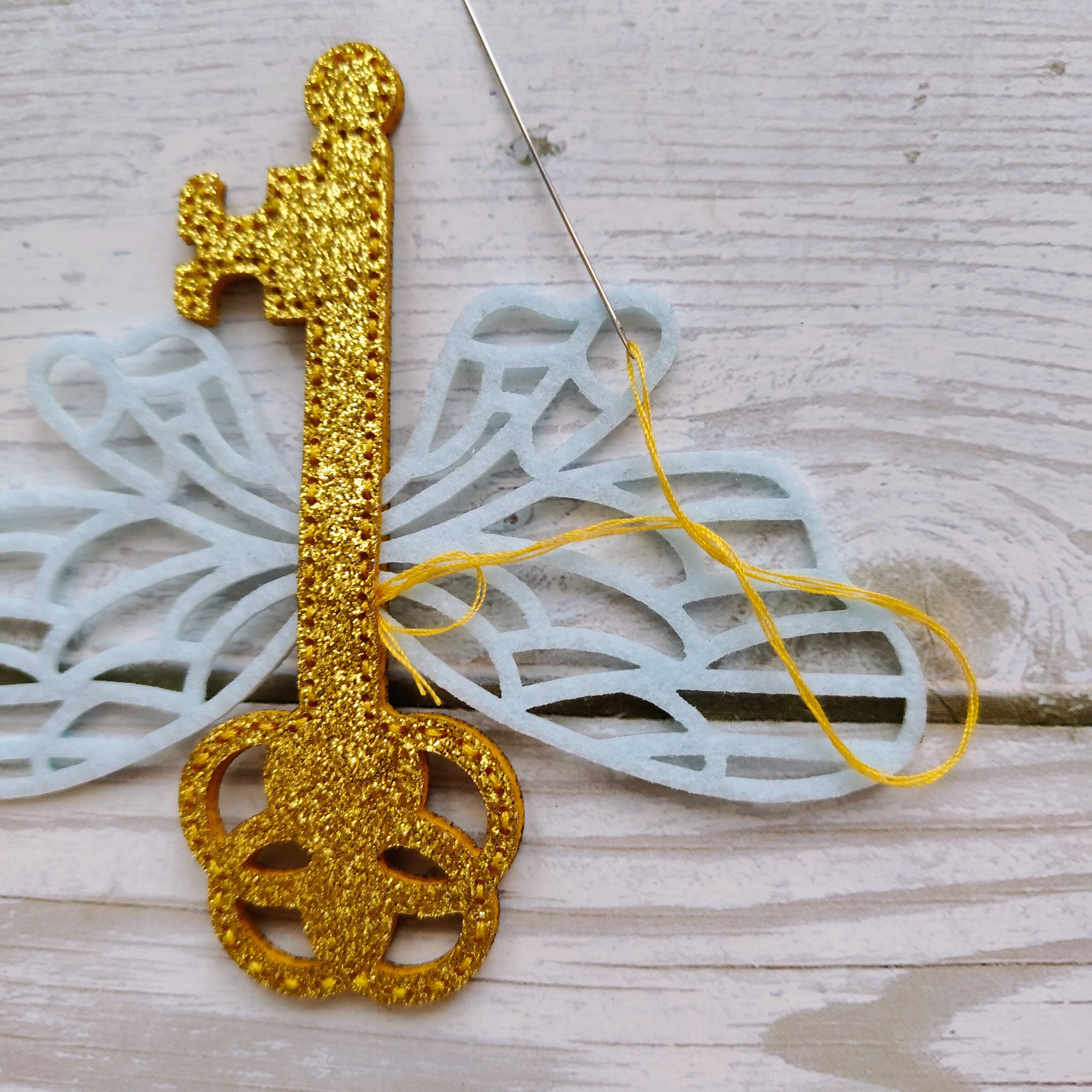 Сложите две детали ключа, вставив между ними крылья. Сшейте по периметру.