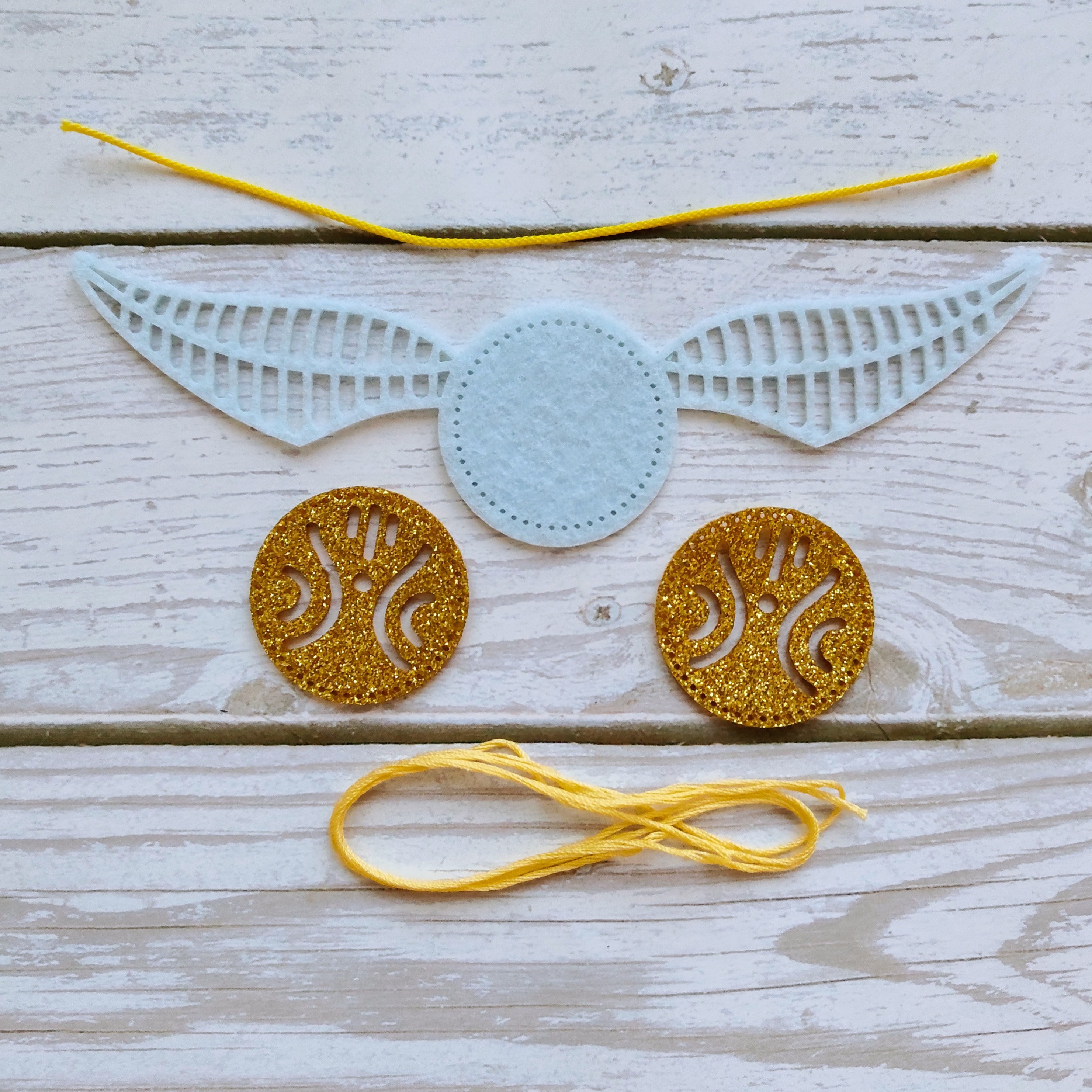Сложите вместе 3 детали снитча и прошейте по периметру. Спрячьте узелок от нитки в слоях фетра.